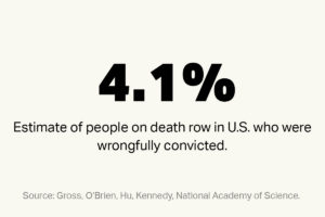 Through various data sources, we know there is a high risk of executing an innocent person under America’s death penalty system. To date, 165 innocent people have been exonerated from death row. In a 2014 study published in the journal of National Academy of Sciences, Michigan law professor Samuel Gross and his co-authors estimated that 4.1% of people on death row in the United States had been wrongfully convicted.