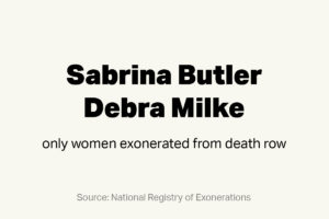 Sabrina Butler spent almost three years on death row and over five years in prison as an innocent woman. On December 17, 1995, Butler was exonerated of murder and child abuse, becoming the first woman freed from death row.